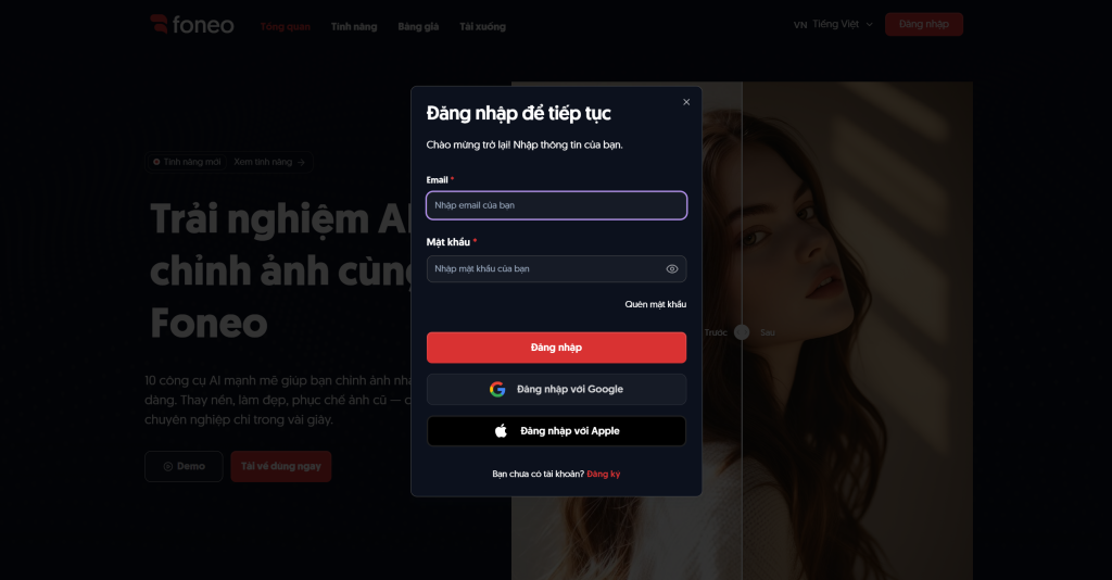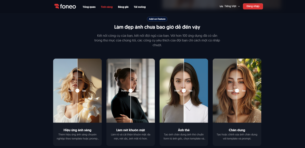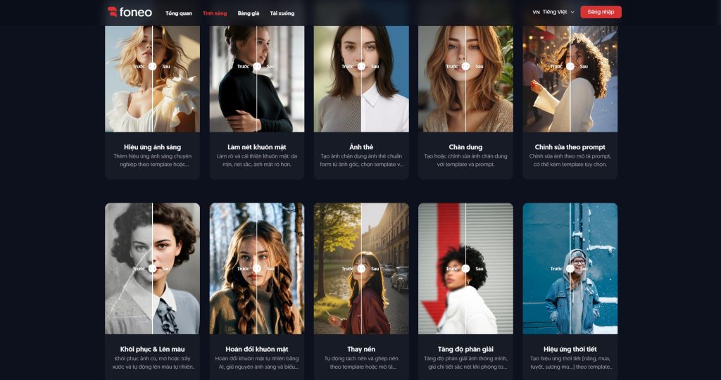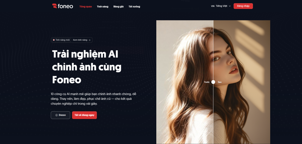 FoneoAI là một nền tảng/nhóm phần mềm chỉnh sửa ảnh chuyên nghiệp, ứng dụng trí tuệ nhân tạo (AI) để xử lý ảnh chân dung, phục chế ảnh cũ, thay nền, nâng cấp độ phân giải và nhiều hiệu ứng sáng tạo khác. Website chính của sản phẩm là foneoai.com, nơi cung cấp thông tin về tính năng, bảng giá và tải ứng dụng.