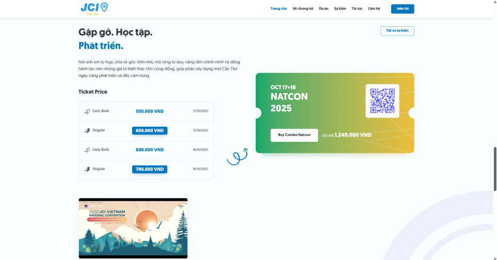 | Phí tham gia / vé sự kiện | Có hiển thị (550k – 790k VND tùy loại và thời gian) |