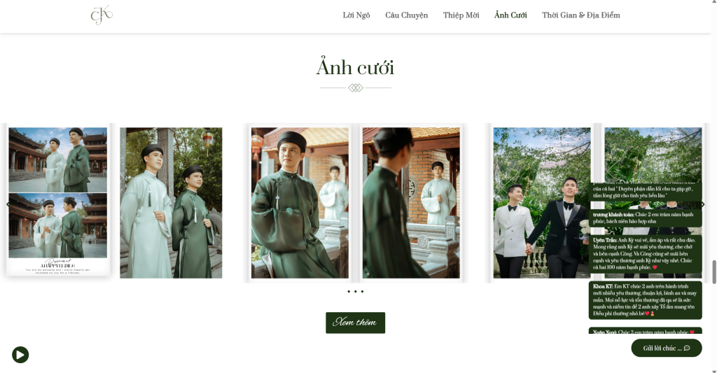 - Ảnh cưới (Gallery): Album ảnh cưới của đôi bạn (giao diện chưa hiển thị rõ nhưng có mục).