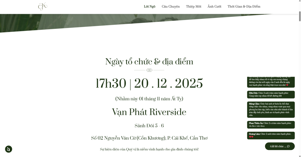 | Chức năng bình luận | Có (dạng Facebook comments/guestbook, đã có 100+ lời chúc) |